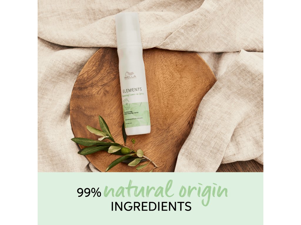 Bezoplachový kondicionér Wella Professionals z řady Elements chrání vlasy před mechanickým poškozením (rozčesávání, tepelné nástroje). Složení z 99% přírodních složek hydratuje vlasy a zabraňuje elektrizování, krepatění i lámání. Veganské složení i ekologicky vyrobené obaly podporují myšlenku ekologického vnímání životního prostředí.